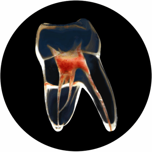 Kanalene kan fylles med guttaperka med sealers.